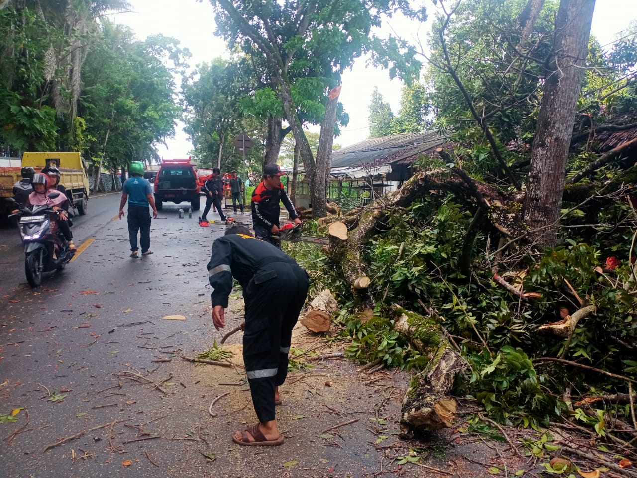 Petugas kembali dikerahkan untuk menyingkirkan material pohon yang menghalangi aktivitas masyarakat.