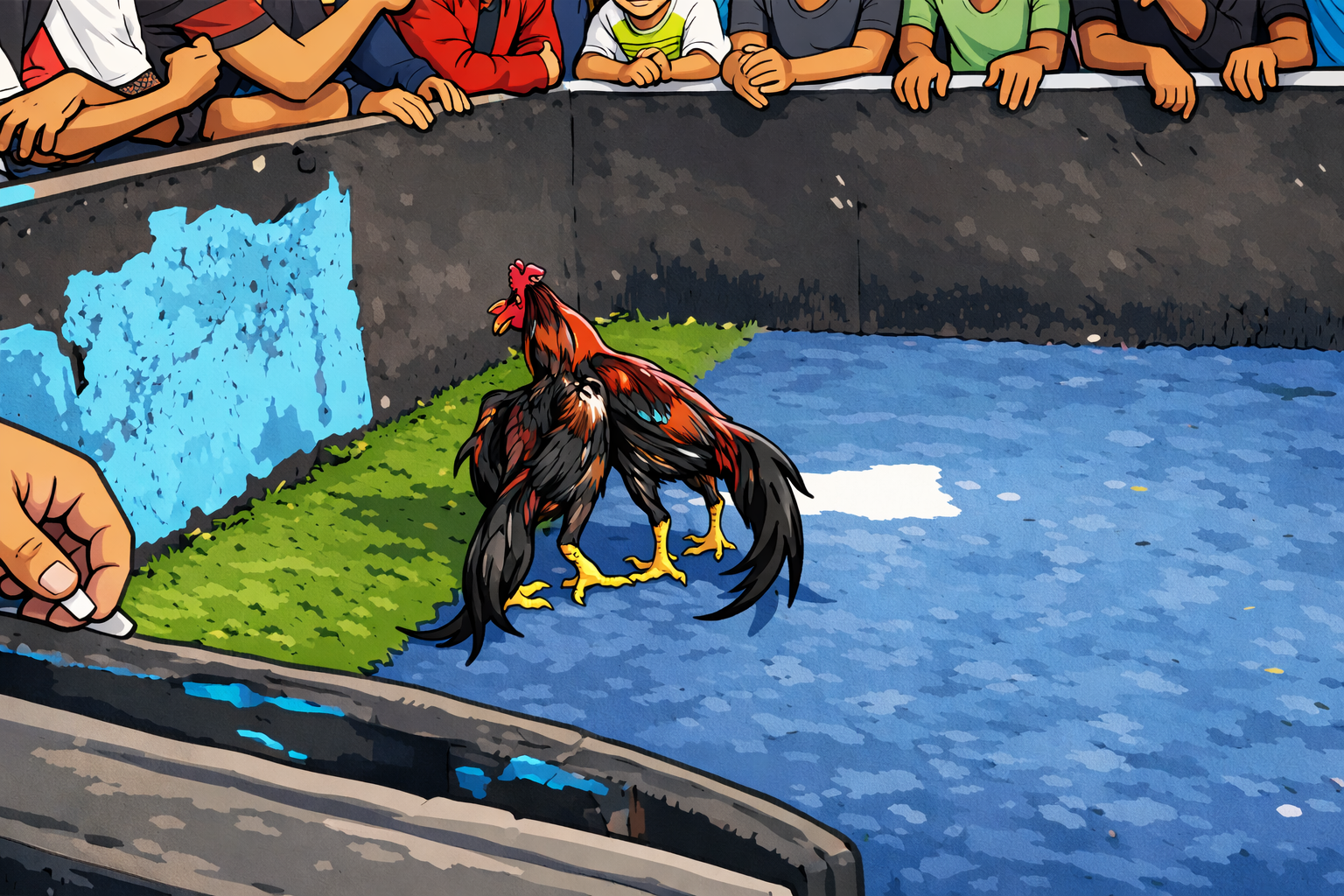 Gelanggang ayam Yang terletak di KM 15 arah uban Kota tanjungpinang, bukan hanya menjadi tempat penyaluran hobi bagi para pecinta ayam Bangkok, tetapi menjadi tempat ajang perjudian.