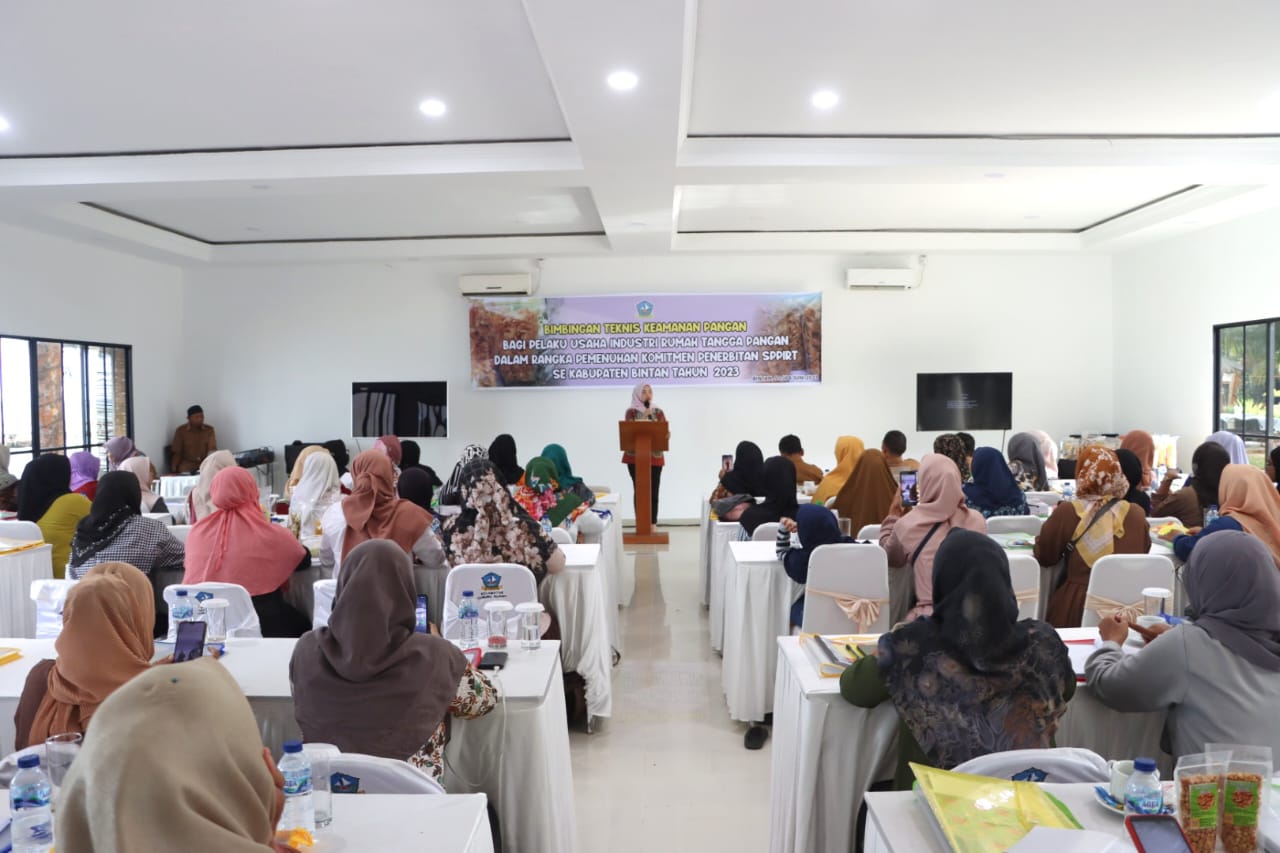 BINTAN – Puluhan pelaku usaha mengikuti Bimbingan Teknis Keamanan Pangan bagi Industri Rumah Tangga Pangam dalam rangka Pemenuhan Komitmen Penerbitan SPPIRT se Kabupaten Bintan tahun 2023. Dibuka langsung oleh Ketua TP PKK Bintan Hafizha Rahmadhani, kegiatan berlangsung selama dua hari dengan beberapa narasumber kompeten, Senin (05/06) di Hallo Bintan.
