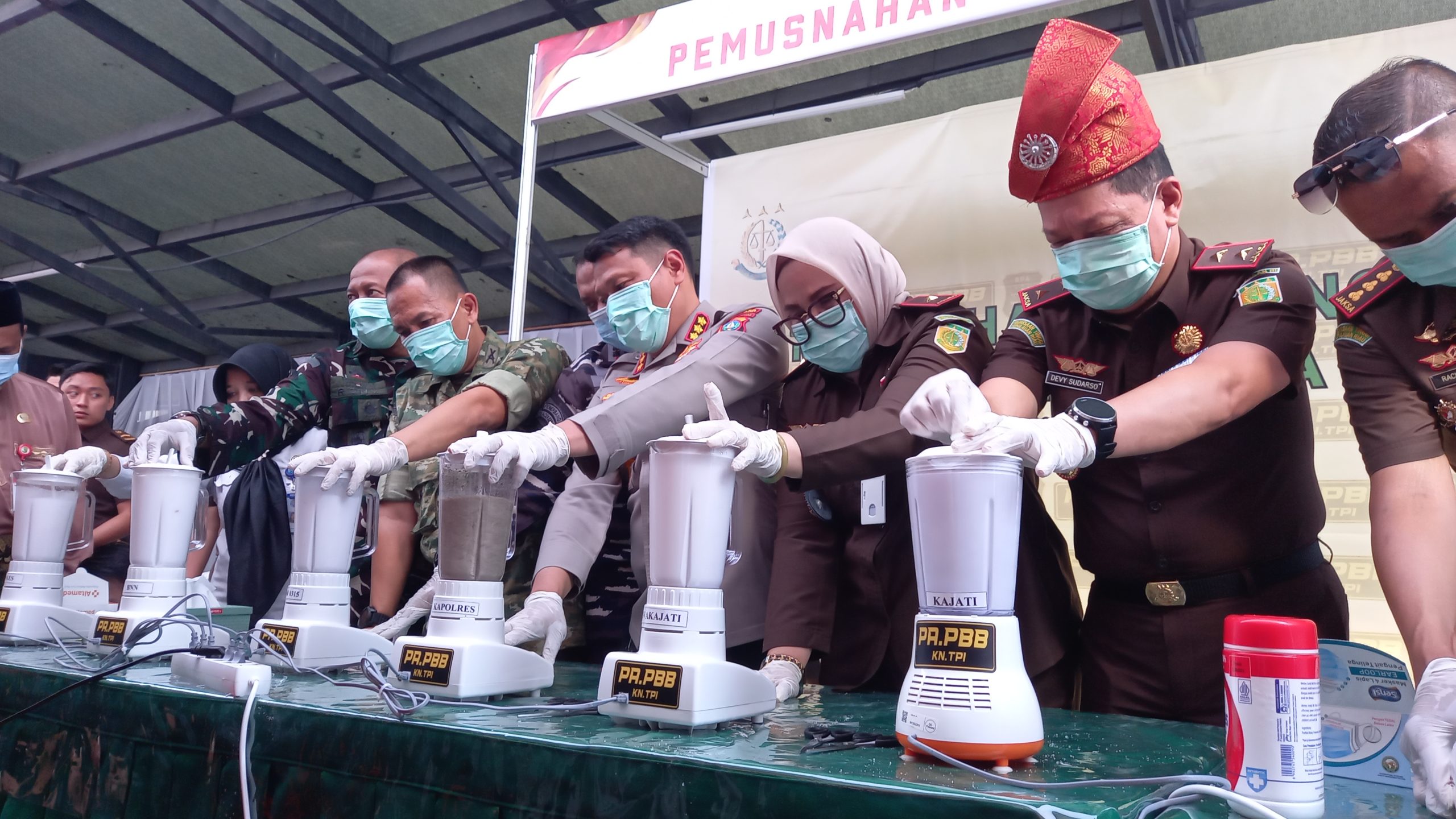 Seluruh barang bukti dimusnahkan dengan cara diblender hingga halus, lalu dibuang ke dalam septic tank untuk memastikan tidak dapat disalahgunakan kembali.