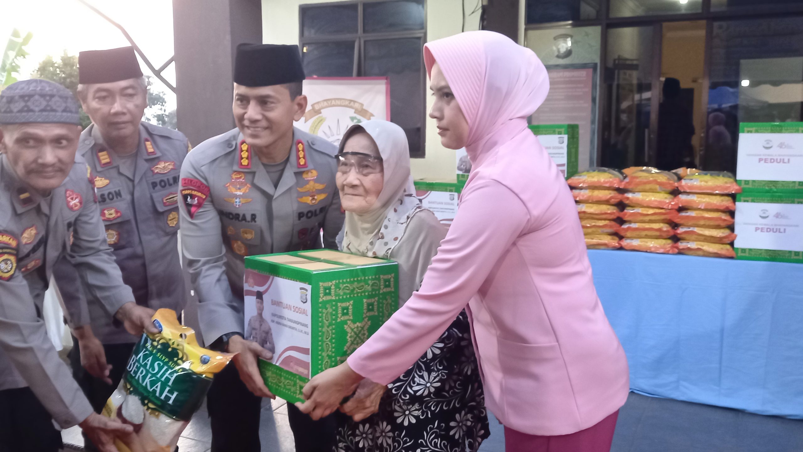 Dalam kegiatan Safari Ramadhan, Kapolresta, Ketua Bhayangkari, dan Danramil 01 Kota menyerahkan bantuan sembako kepada masyarakat penerima manfaat.