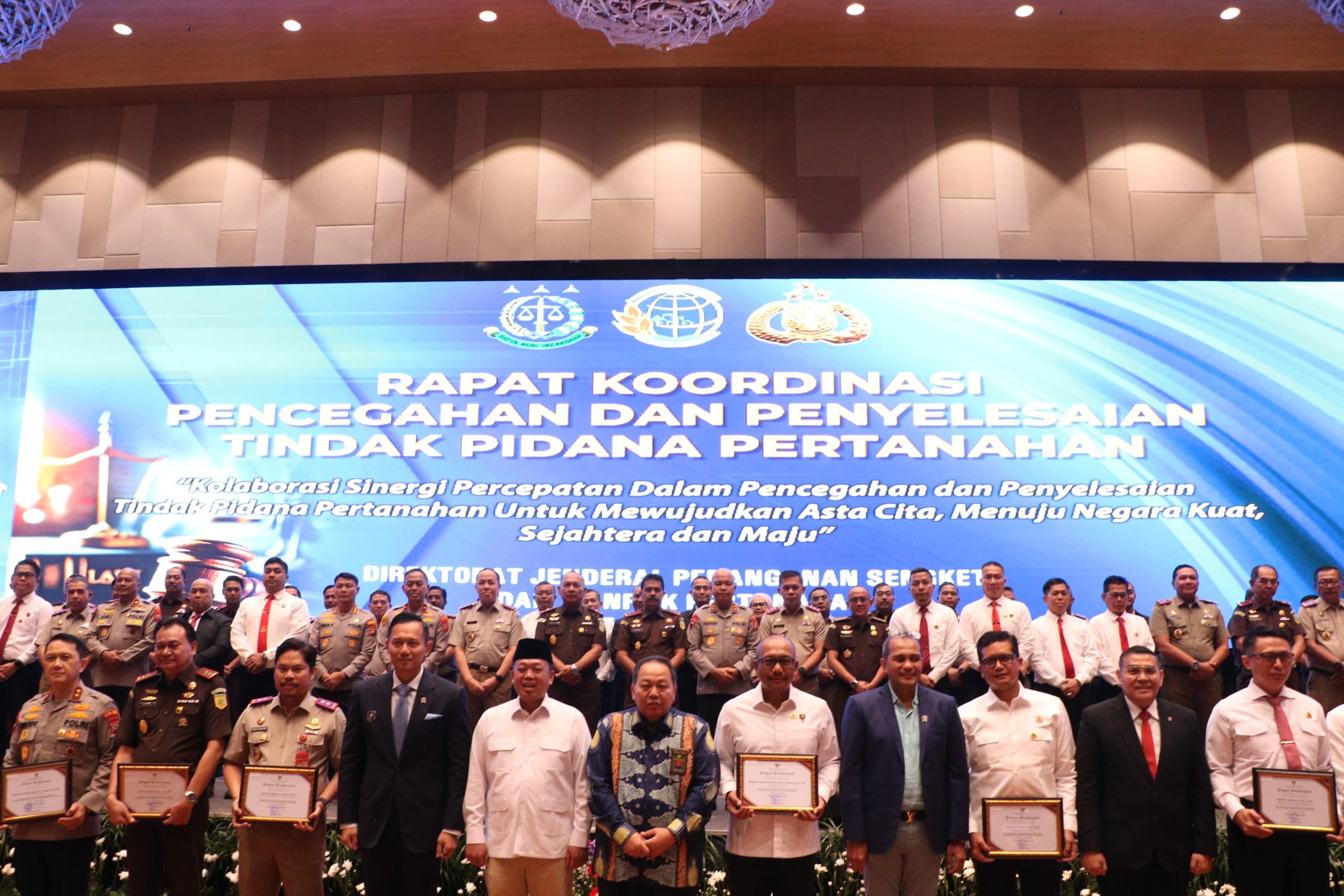 Penghargaan diserahkan dalam kegiatan Rapat Koordinasi Pencegahan dan Penyelesaian Tindak Pidana Pertanahan di Ballroom Hotel Grand Mercure, Jakarta, Rabu (3/12/2025).