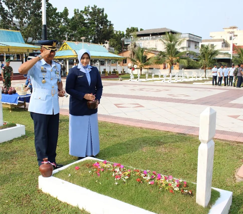 TANJUNGPINANG – Dalam Rangkaian Peringatan Hari Ulang Tahun TNI Ke-78 tahun 2023, Komandan Lanud Raja Haji Fisabilillah Kolonel Nav Arief Budiman.,S.T.,PSC(J) didampingi Ketua PIA Ardhya Garini Cab.13/ D I Lanud Raja Haji Fisabilillah Ny. Novi Arief Budiman beserta Pengurus dan Personel Lanud Raja Haji Fisabilillah mengikuti Upacara Ziarah dan Tabur Bunga di Taman Makam Pahlawan Pusara Bakti Tanjungpinang. Rabu (4/10/2023).