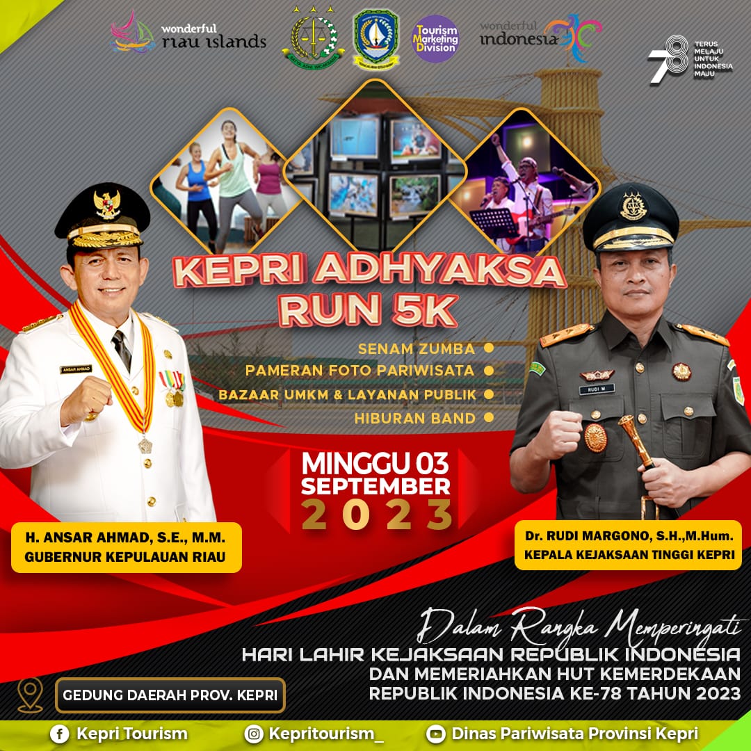 KEPRI – Dalam rangka memperingati Hari Ulang Tahun (HUT) ke-78 Kemerdekaan Republik Indonesia, Hari Ulang Tahun ke-78 Kejaksaan Republik Indonesia, dan Hari Jadi ke-21 Provinsi Kepulauan Riau, Pemerintah Provinsi Kepulauan Riau dan Kejaksaan Tinggi Kepulauan Riau menggelar rangkaian acara Kepri Adhyaksa Run 5K, Bazar Layanan Publik dan UMKM, serta Pameran Foto.