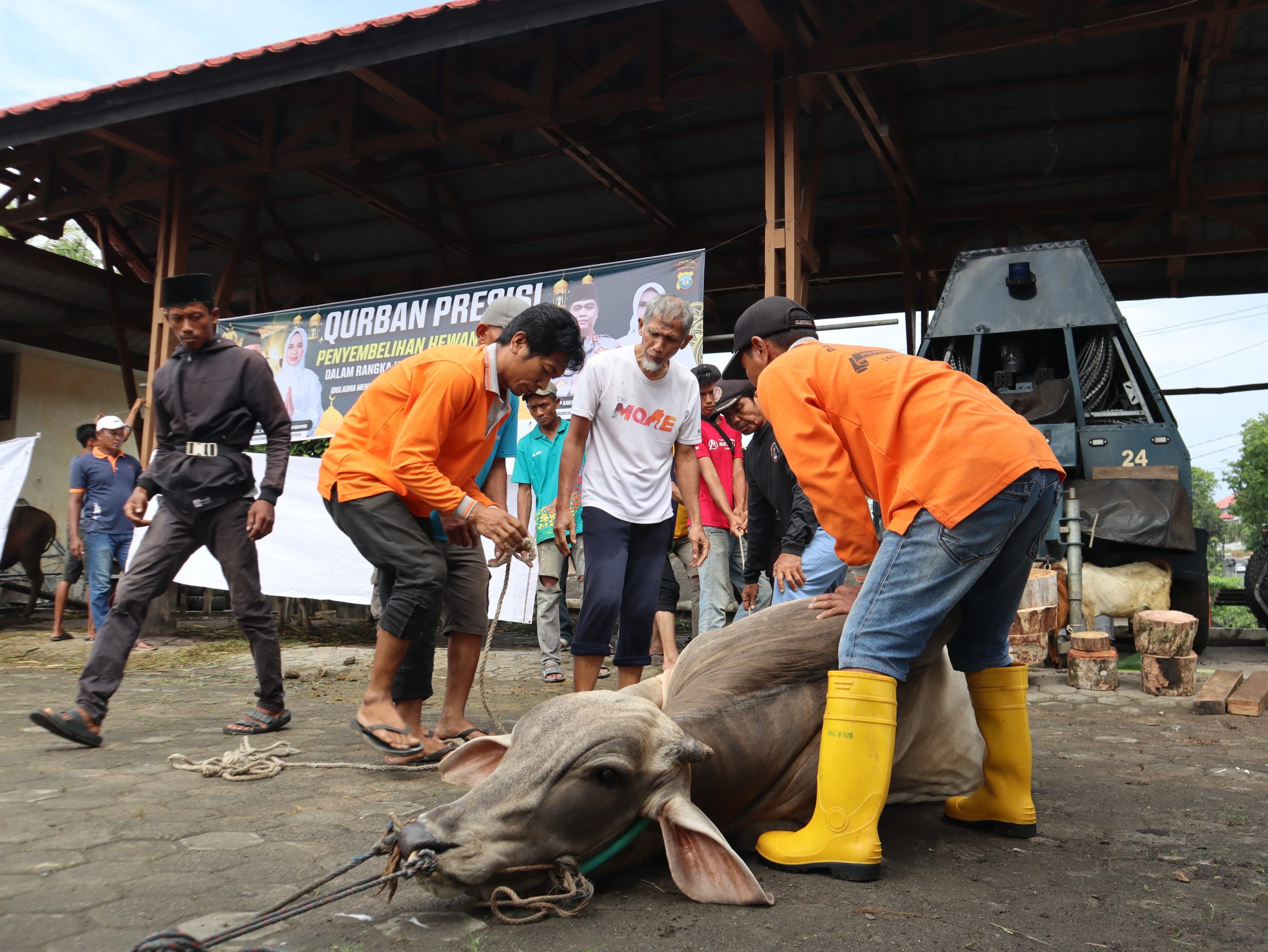 “6 ekor hewan kurban ini diantaranya 2 ekor kambing dari masyarakat sekitar dan 4 ekor sapi salah satunya satu ekor sapi bantuan dari Pemko Tanjungpinang,” ujarnya.